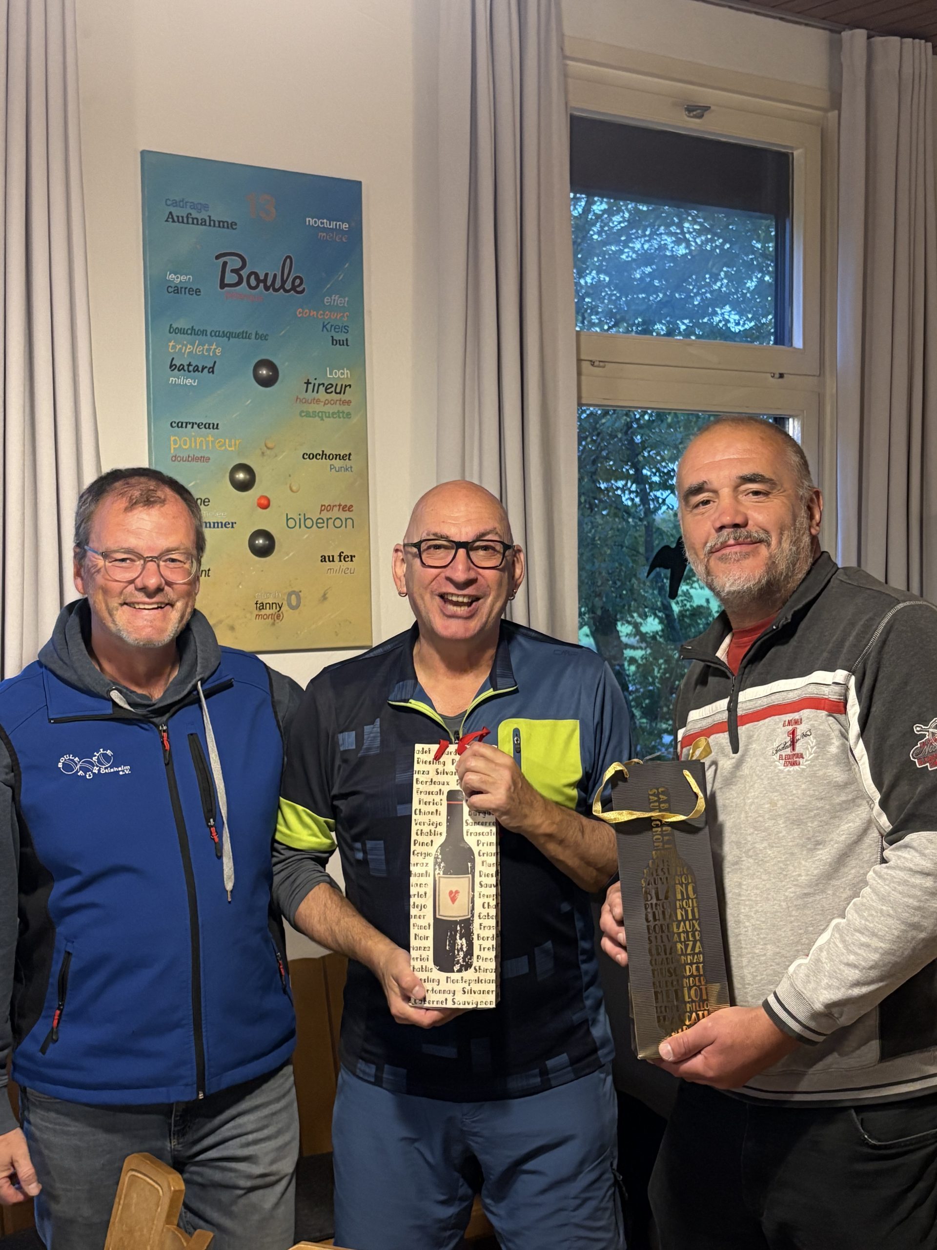 Nach einem äußerst spannenden Finaltag am Samstag, den 18. Oktober war es geschafft. Ecki Buhl wurde der verdiente VEREINSMEISTER 2025! Nach sechs Vorrunden-Spieltagen seit Juli bis Samstagnachmittag, war die Entscheidung gefallen für die acht Viertelfinalisten. Manche sogar, wie Patrick Herrling erst auf den letzten Drücker mit drei gewonnenen Tête-à-Tête (Einzelspielen) am Samstagmorgen – ein recht überzeugender Move! Nach dem Viertelfinale fanden sich die besten vier im Halbfinale wieder. Hier setzt sich dann Ecki Buhl gegen Markus Hammer durch. Letzterer hatte eigentlich sein Triple im Blick, Sprich zum dritten Mal hintereinander VEREINSMEISTER zu werden. Wurde jedoch durch Ecki Buhl mit einem 13:12 in einem spannenden Halbfinale jäh gestoppt. Im zweiten Halbfinale setzte sich Peter Schell gegen Ab Leushuis durch und zog überzeugend in das Finale ein. In diesem lag dann auch Peter Schell immer wieder mit einer Nasenlänge vorne. Nach 2:0, 3:1, dann 6:3, nach 9:7, dann 12:10. An dieser Stelle vergab Peter Schell, den vielleicht auch entscheidenden Matchball. Das Momentum war nur auf der Seite von Ecki Buhl, da der Vereinskamerad in der Aufnahme zuvor den Sack nicht zumachte. In der folgenden Aufnahme drehte Ecki Buhl das Spiel, gewann knapp mit 13:12 und darf sich nun nach langer Zeit, zu Recht, als VEREINSMEISTER fühlen! Gratulation!